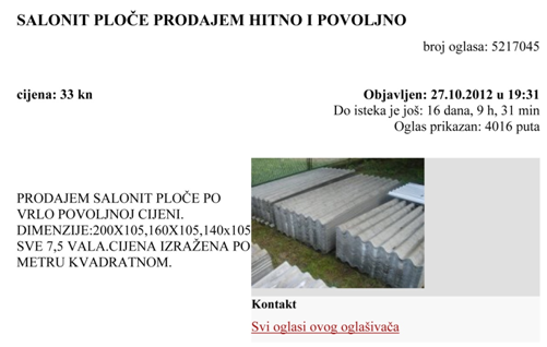 O proizvodnji i uvozu azbesta u Republici Hrvatskoj (RH)