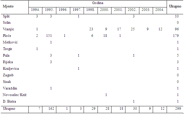 Neposredno nakon zabrane rada u Salonitu 2006. uvoz je bio značajan, ali se do kraja 2011. znatno smanjio (tablica 4). Tablica 4 – Uvoz azbesta u RH iz zemalja EU-a nakon zabrane rada Salonita (izvor podataka: Carinska uprava RH)